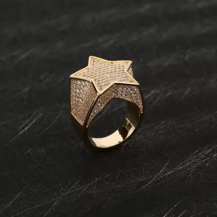 Step up your style game with the Five Star Ringsβ Stylish Hip Hop Brass Jewelry Zircon-Paved Wedding Rings. These bold, eye-catching rings feature dazzling zircon stones intricately paved on durable brass, combining streetwear edge with wedding-day elegance.
